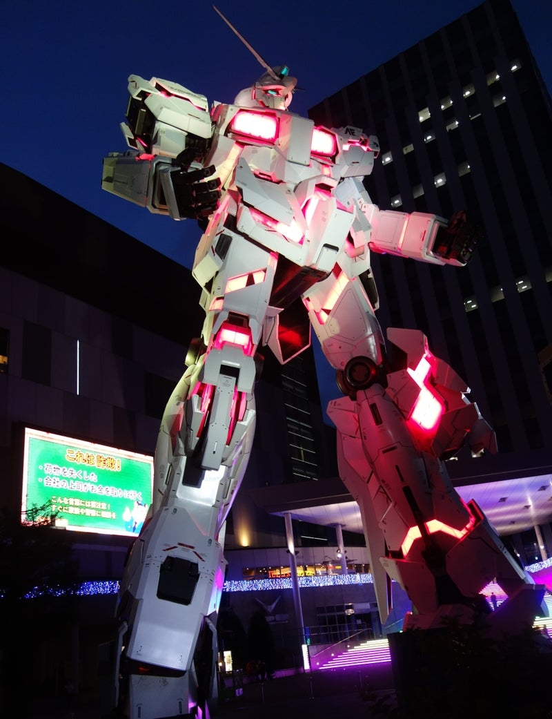 実物大というユニコーン・ガンダムは、夜になるとライトアップするので