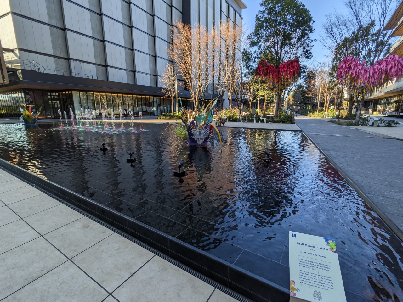 お店の数はそれほど多くないですが、水辺のある広場があったり