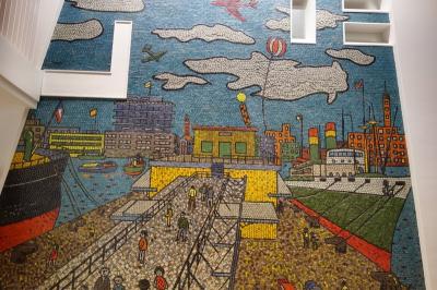 山下清氏モザイクタイル壁画「横浜の今昔」が飾られています