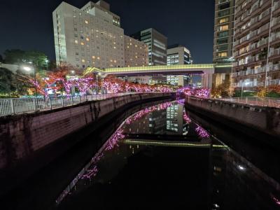 JR山手線の大崎駅から五反田駅までの間、目黒川沿いの桜並木が