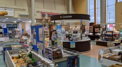 空港近く、メルヘンの丘近く、国道沿いで寄りやすい。食事もお土産も