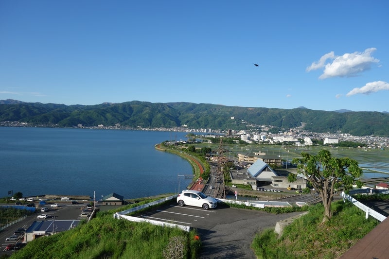 テラスのような場所があり諏訪湖を眺めることが出来て