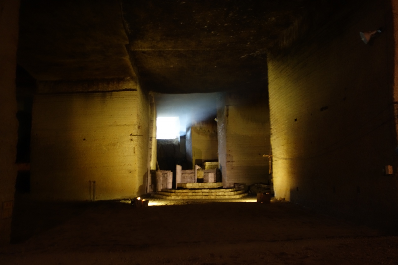 坑内に入り階段を下りて行くと、野球場がすっぽり入ってしまう程の広大な空間が