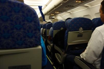エコノミークラスの座席は3×3、1時間程の空の旅。