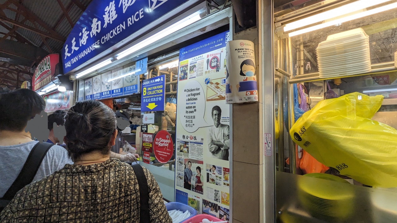チャイナタウン近くのホーカーズ。有名なチキンライスの店、天天海南鶏飯がある