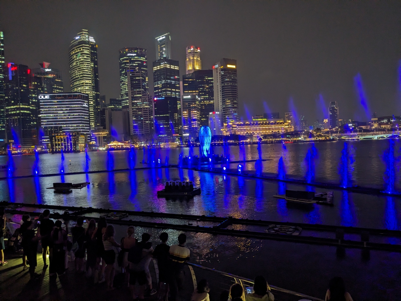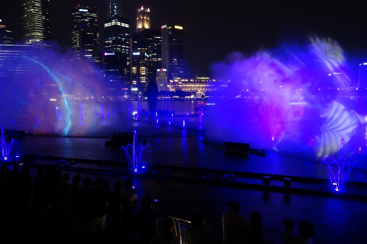 音楽と噴水とレーザー光線とショーで、シンガポールの夜景をバックに