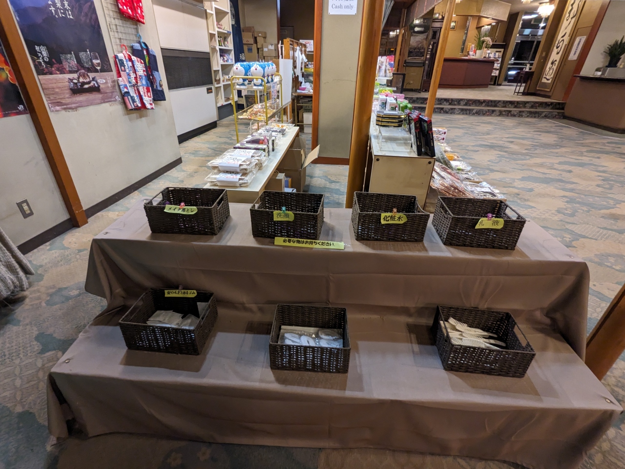 洗顔料や化粧水等のアメニティはロビーにあります