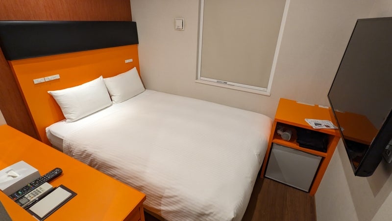 広さ12㎡のダブルルーム、まあ狭いですが、寝るだけなので良し
