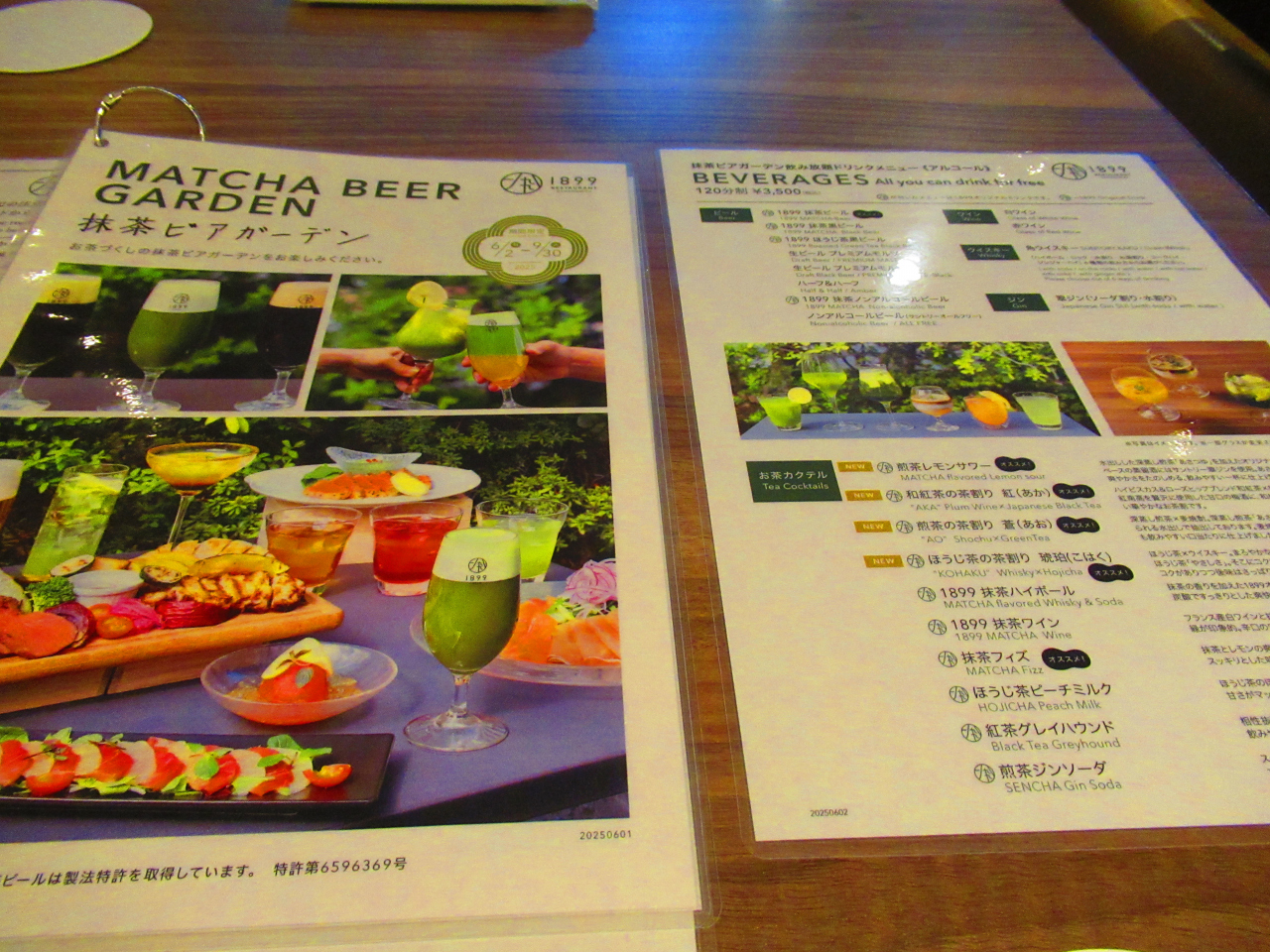 夏だけやっている抹茶ビアガーデンに行きました。人気なのか席が少ないのか、なかなか予約が取れず、2ヶ月以上前に予約しました。2時間¥3500で飲み放題です。