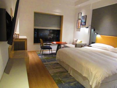 ツアーで4連泊ました。吹き抜けが大きくて、きれいなホテルで、部屋は広くてゆったりしていました。バスルームはバスタブとシャワーブースがあり、広さは十分でした。