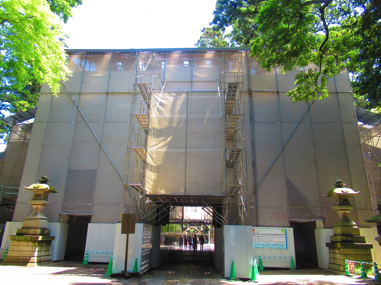 令和3年から8年まで令和の大改修の真っ最中で、楼門は工事のため完全に覆われていました。- 旅行時期