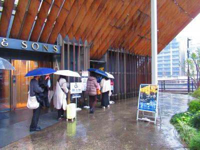 入口が狭くて、入る人と出る人で交錯し、さらに雨だったので傘立てもそこにあり、大混乱でした。