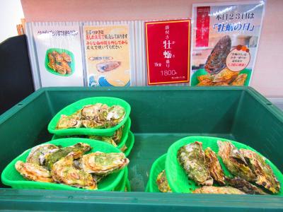かき1Kg¥1,800で、毎月23日は「牡蠣の日」でかきの量が1.2倍ということで、23日に行ってきました。土曜日の昼どき、屋内席は予約で満席でした。雨で寒かったので、屋内席を予約しておいてよかったです。