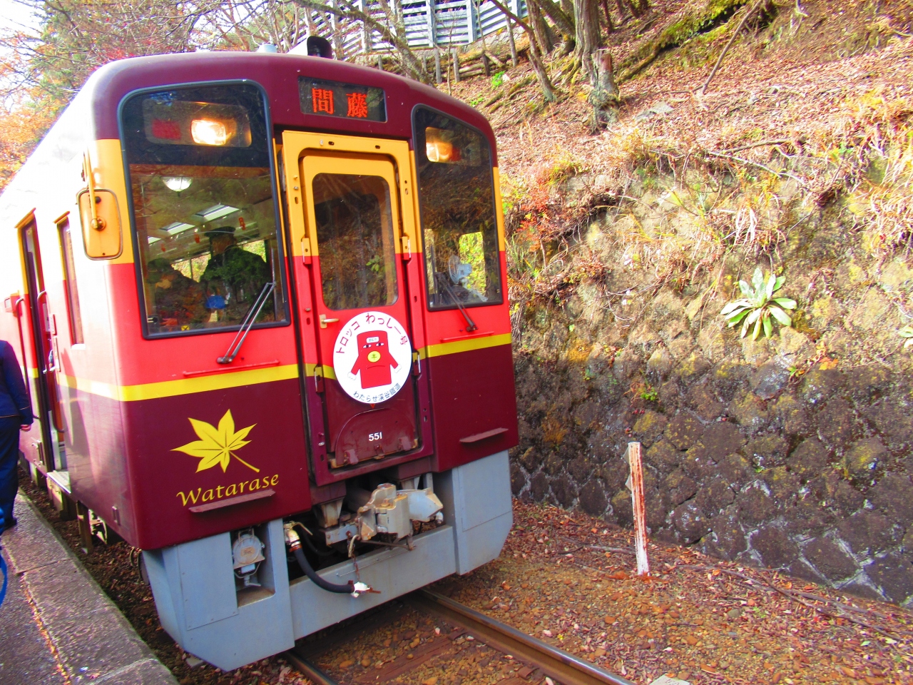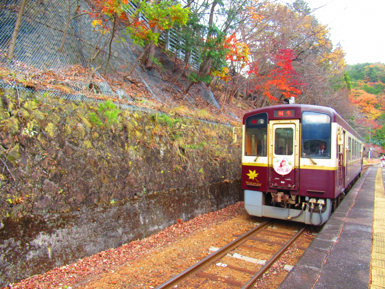 桐生駅から「トロッコわっしー1号」に乗りました。乗車券の他に、1ヶ月前に発売される整理券が必要で、乗る日が祝日だったので、1ヶ月前の発売時間と同時にコンビニで購入しました。