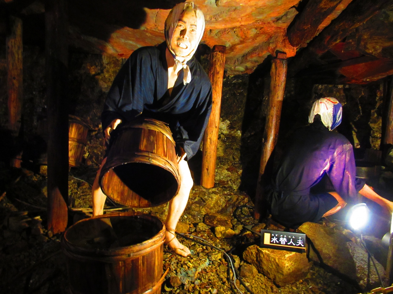 400年の歴史を誇る、足尾銅山の坑内観光施設。坑道の長さは1,200Km以上あるけど見学できる坑道は460m。リアルな人形を使って、当時の様子を再現しています。手掘りだった江戸時代から、明治、大正、昭和と順にたどっていくと段々機械化されていきます。
