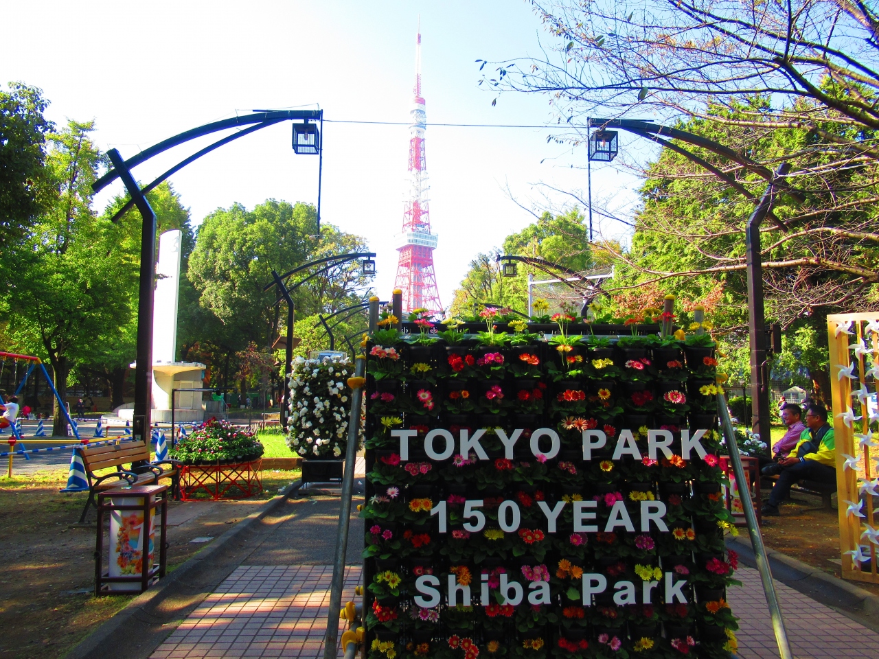 正面に東京タワーが見える公園で有名です。都営三田線「御成門駅」からすぐですが、都心なので、少し歩けば色んな駅があります。