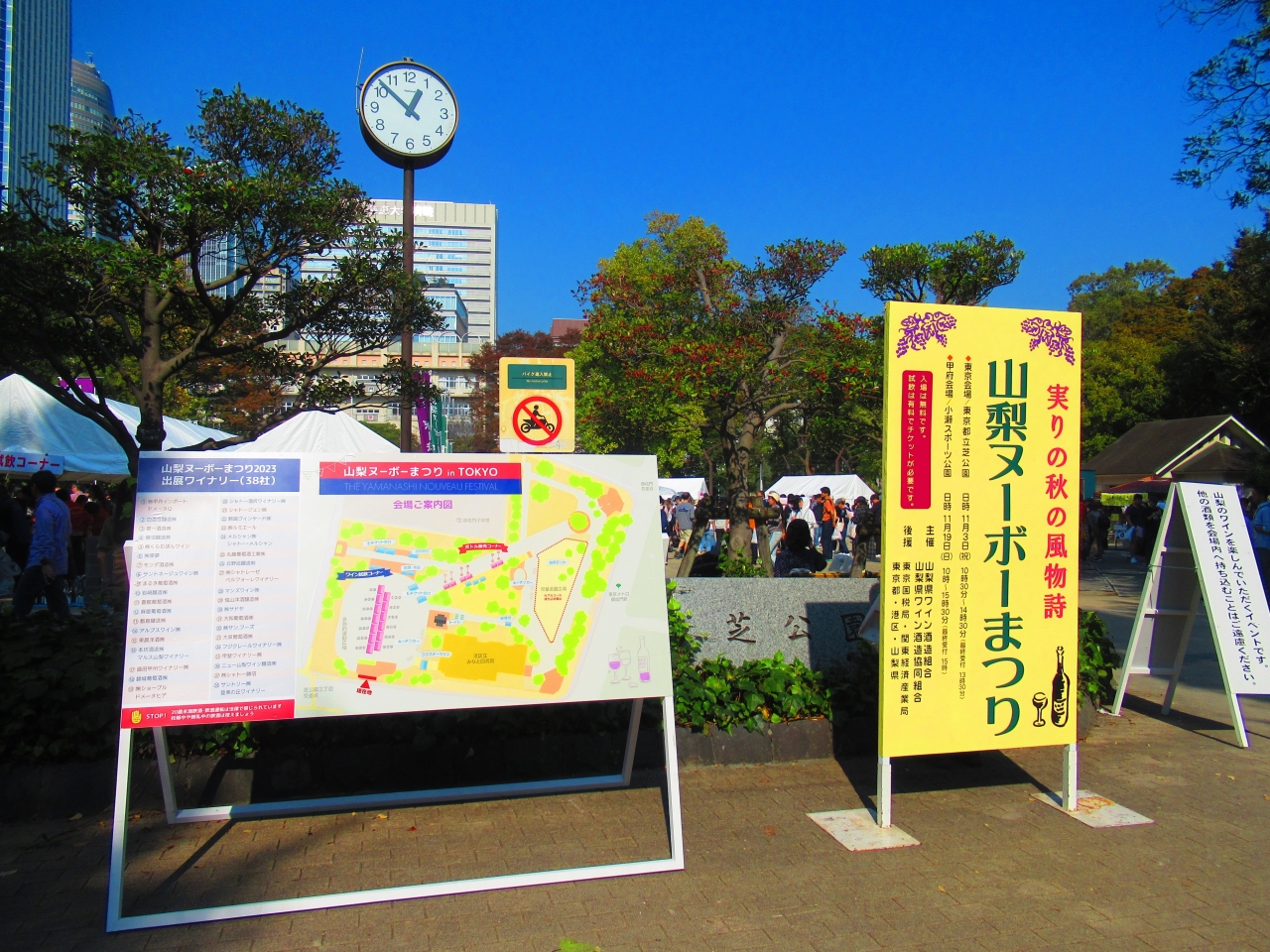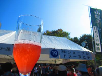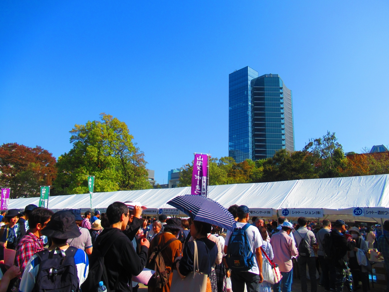 今回は山梨産ワインの新酒、山梨ヌーボーの解禁日の11月3日に開催された「山梨ヌーボーまつり」で行きました。¥3,000で試飲用のグラスとチケット10枚を購入して、山梨県内の38社のワイナリーの新酒ワインを試飲できるイベントです。前回までは日比谷公園で開催されていました。