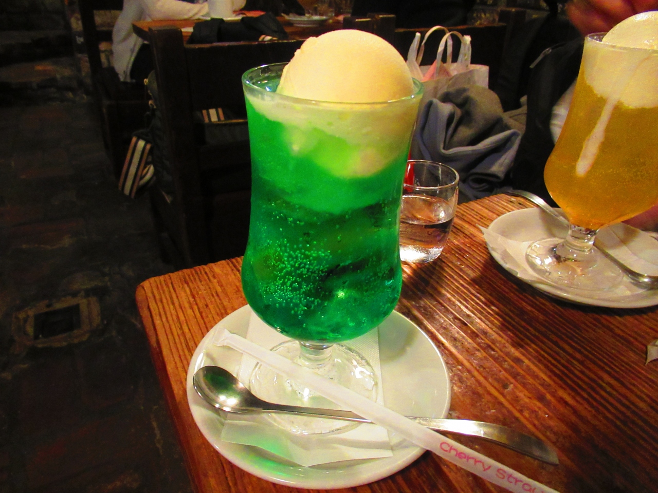 「ナポリタン」を食べに行ったのですが、同行者の勘違いで、それは「さぼうる2」でした。「さぼうる」は喫茶メニューだったので、ミックストーストとクリームソーダを注文しました。