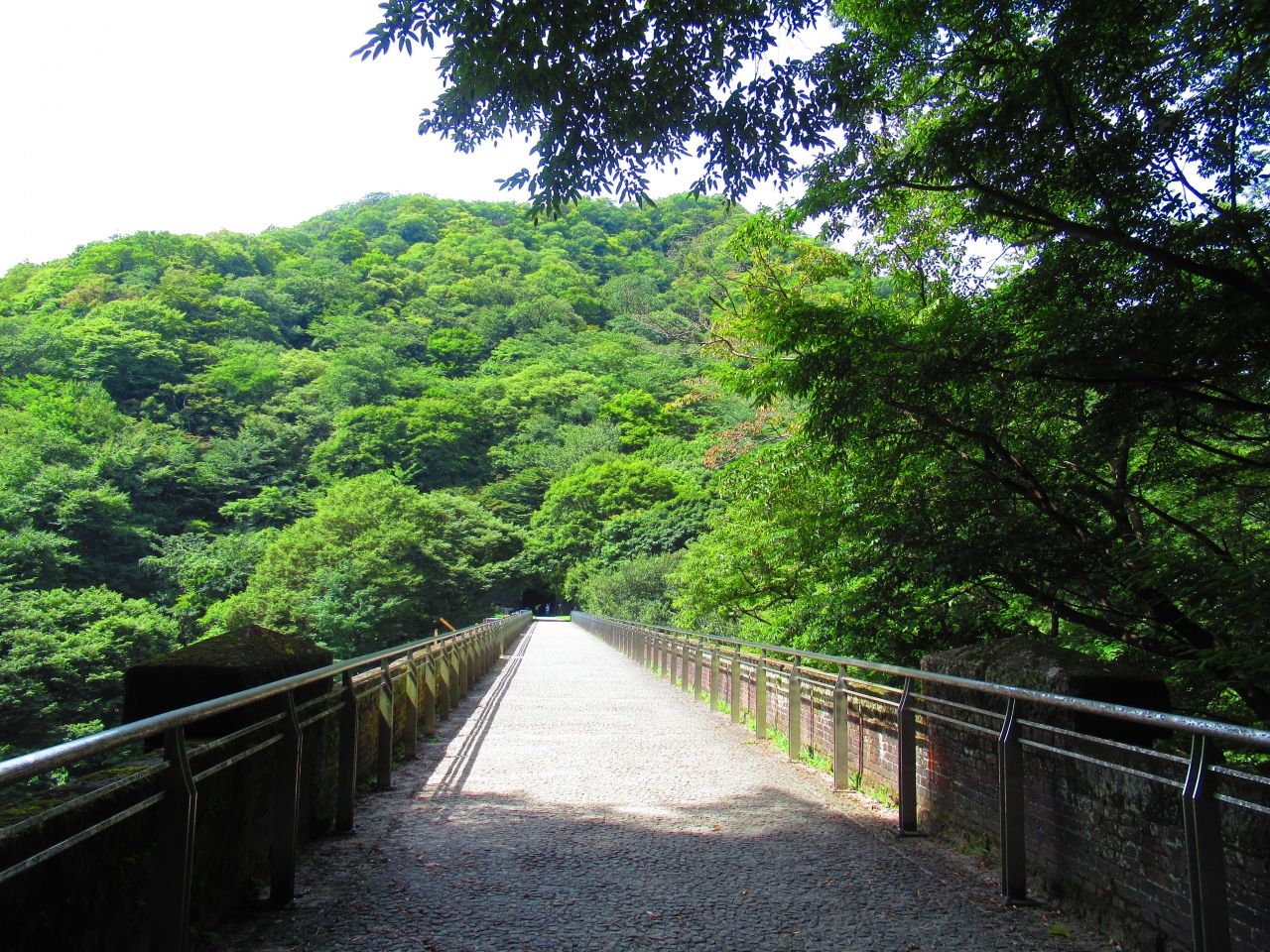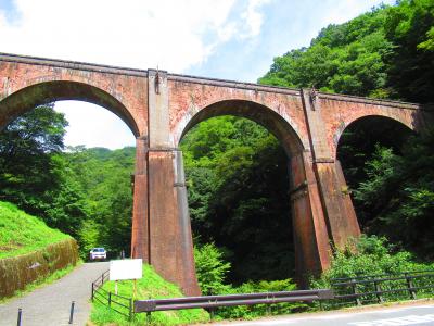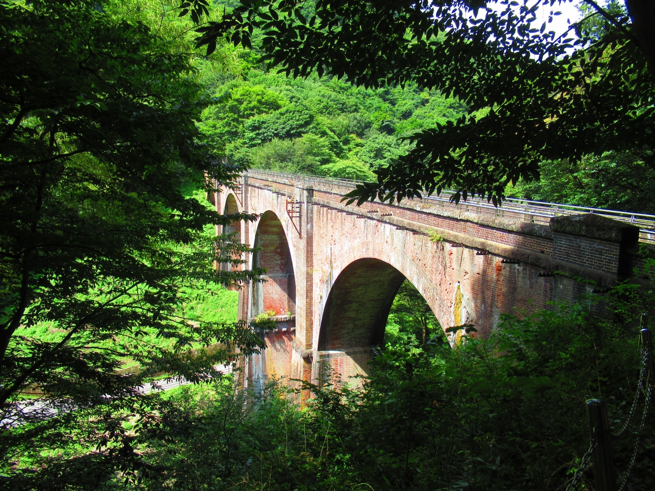 明治25年12月に完成した旧信越本線の橋梁で美しいレンガのアーチ橋です。川底からの高さが31mあり、下から見上げると圧倒的迫力です。階段で橋上に上がることもできます。