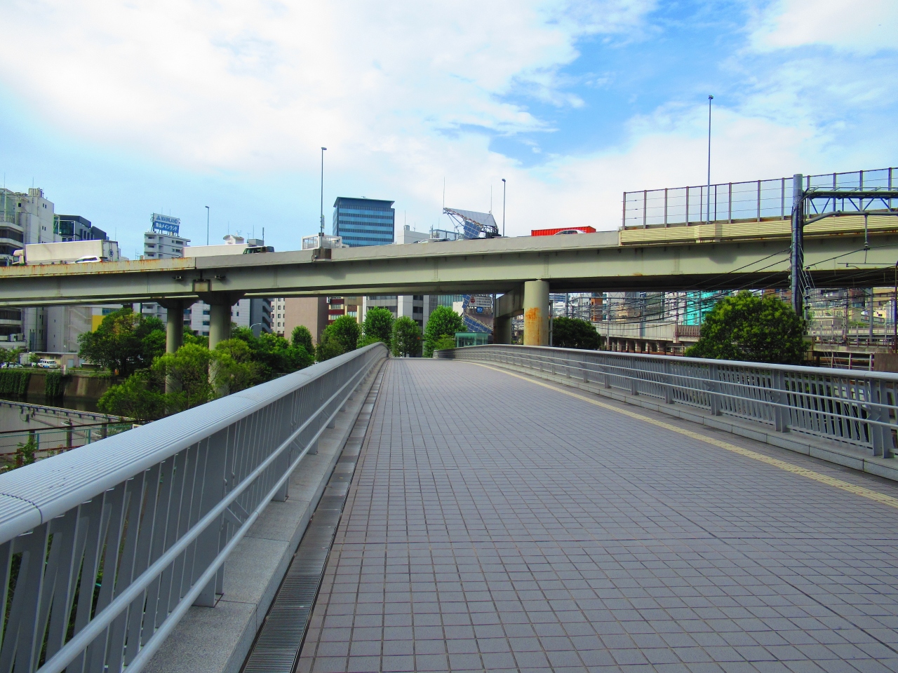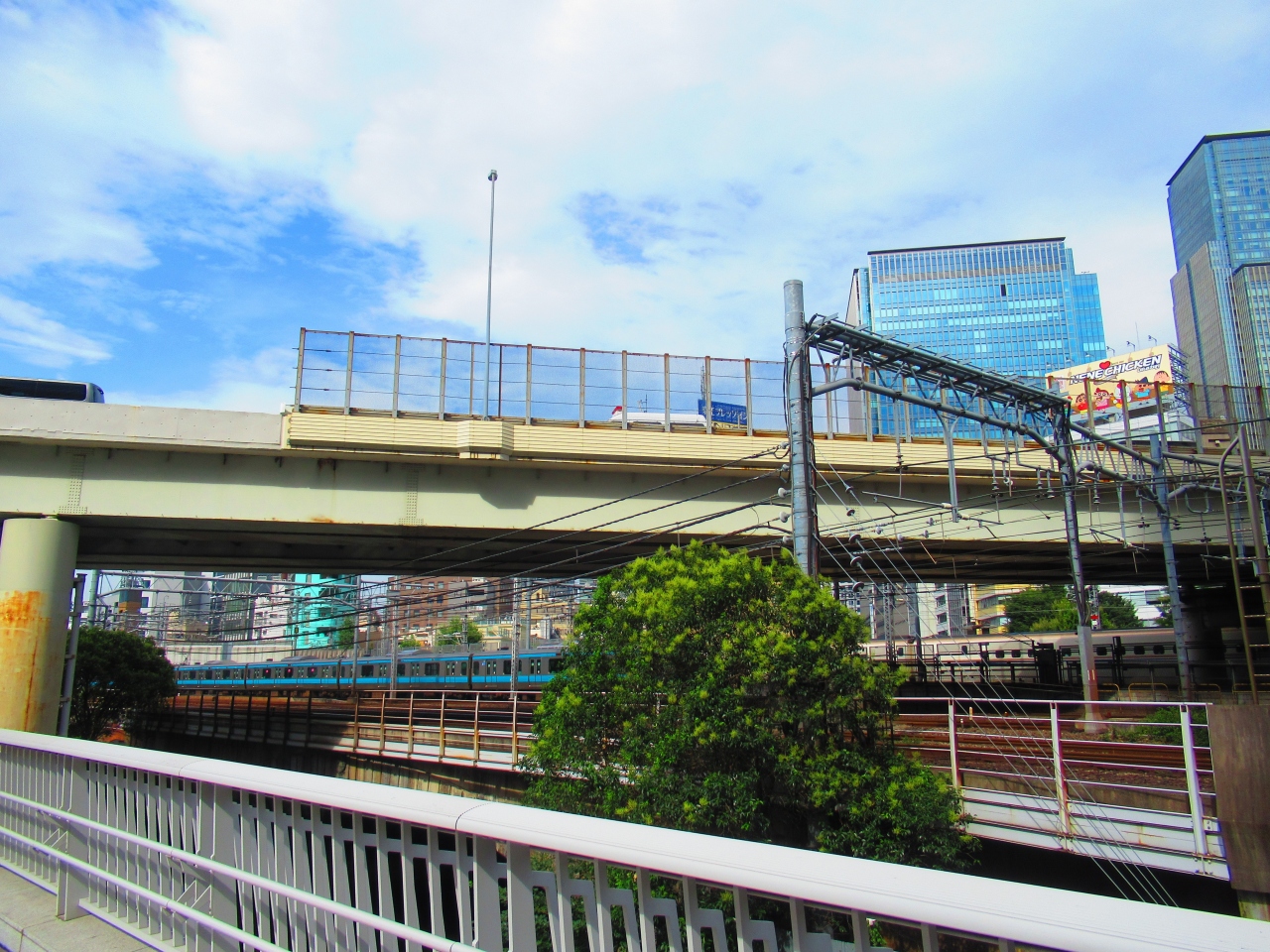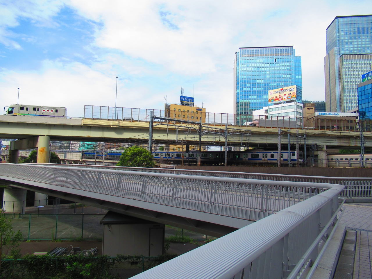 東京駅と神田駅の間にある人道橋です。JRの線路に並行しているので、新幹線を始めとする東京駅を発着する多くの電車がひっきりなしに通るのを、ほぼ同じ高さで見ることができるので、迫力があります。