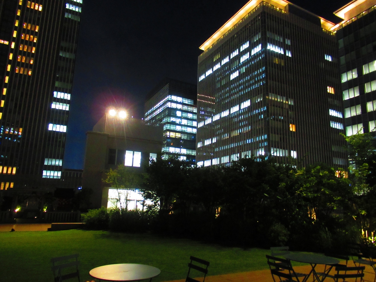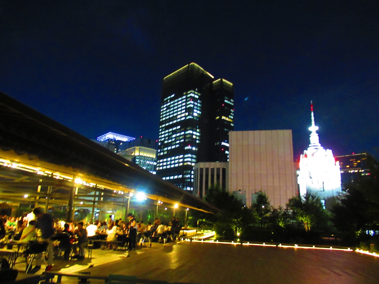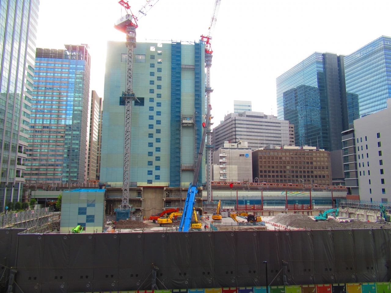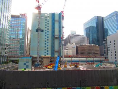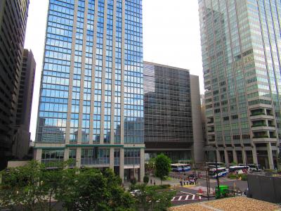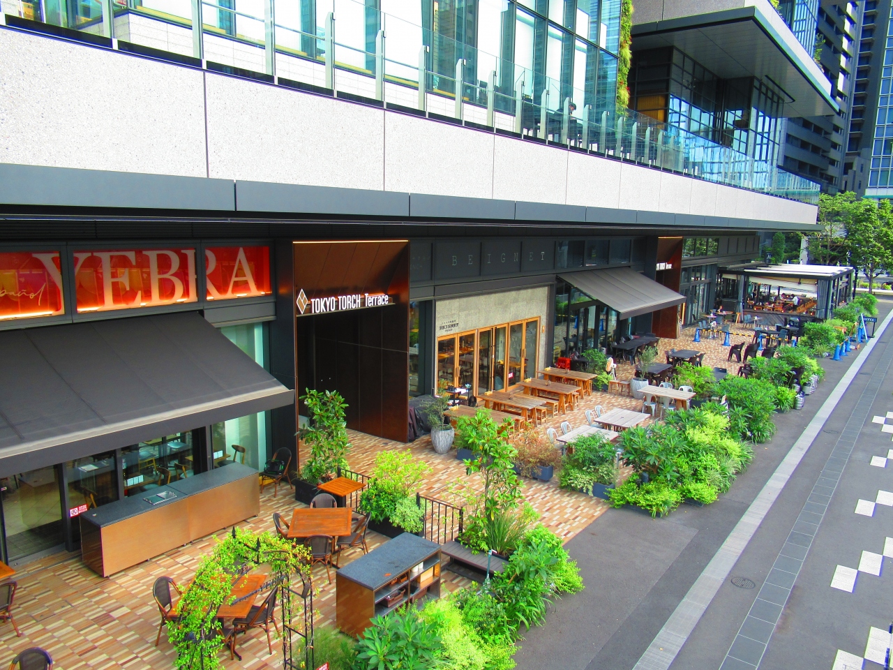 東京駅日本橋口からすぐの常盤橋タワーとトーチタワーの間の広場で、現在は常盤橋タワーはオープンしていますが、トーチタワーは工事中なので何とも中途半端な空間です。広場に面してレストランの屋外席が設置されていましたが、この暑さではちょっとつらいかなと思いました。