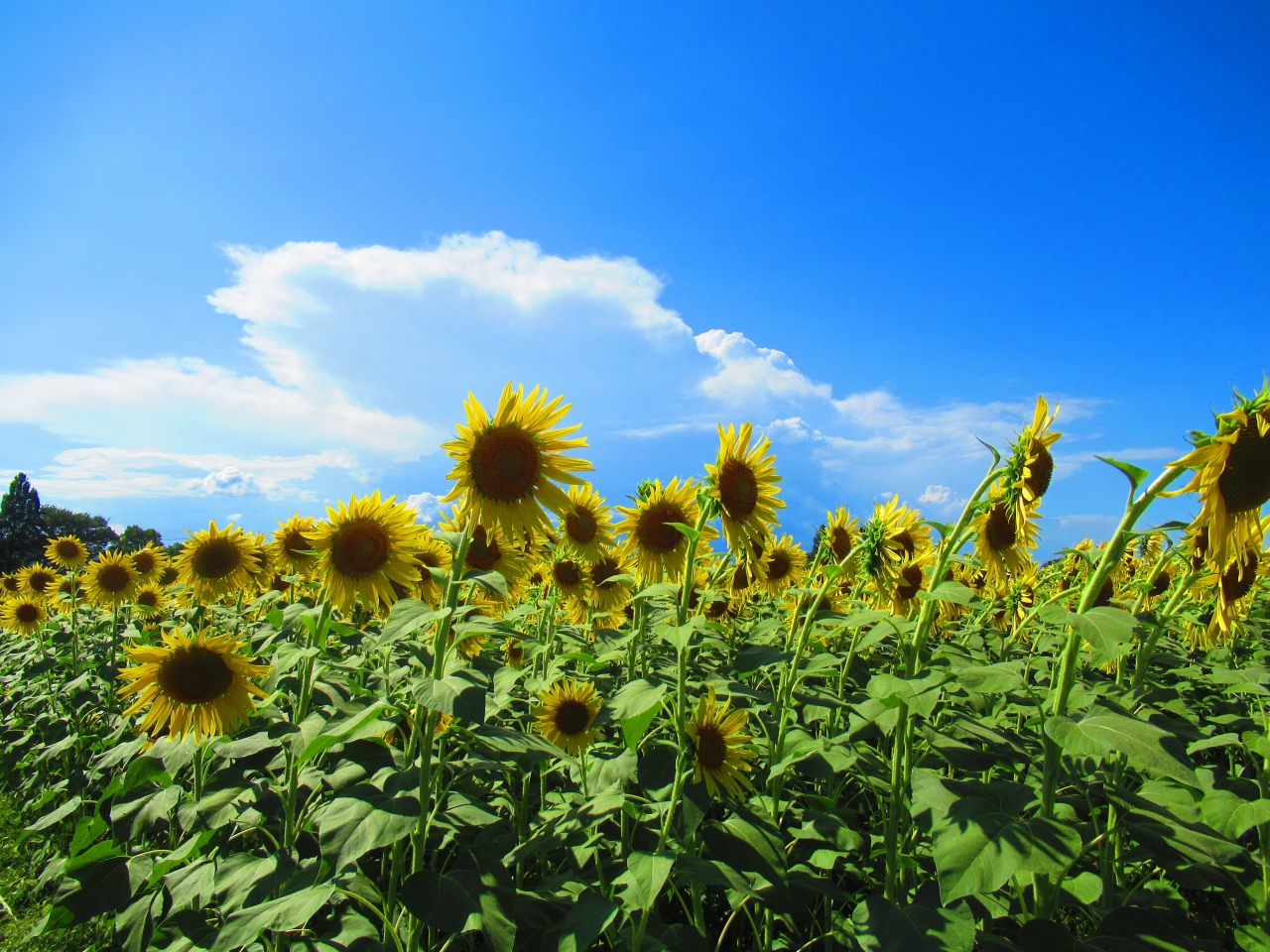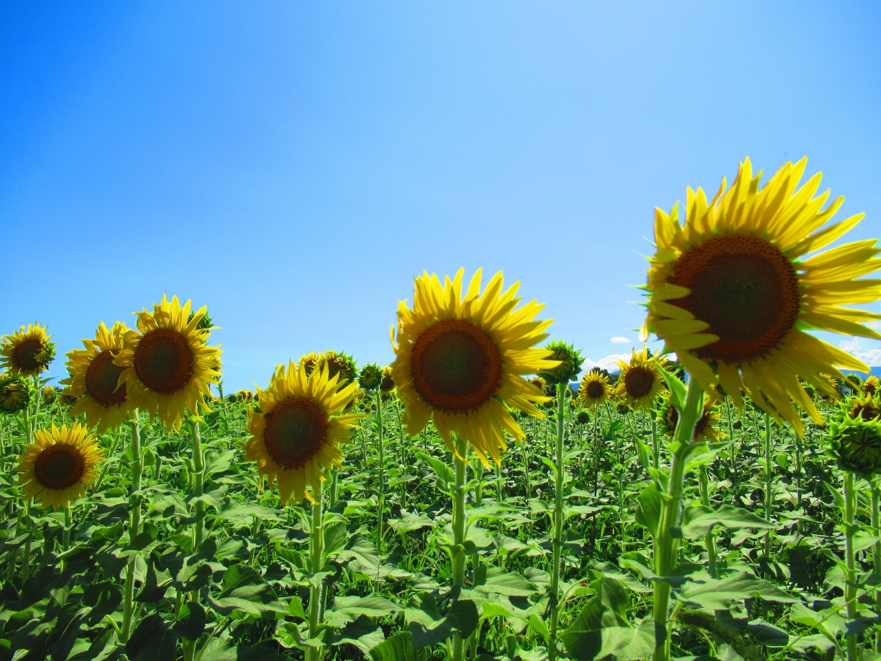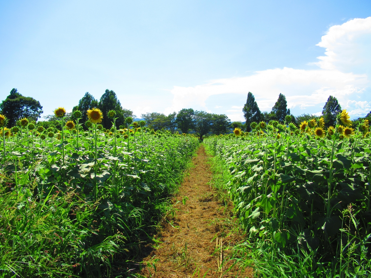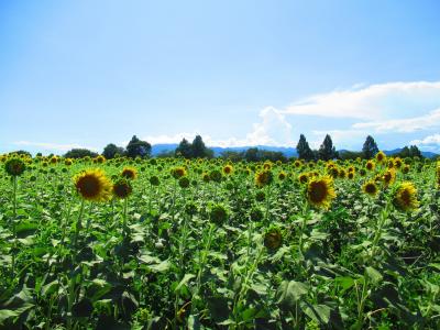 ひまわり畑の範囲は広く、時期をずらして咲くように配慮しているようで、満開の畑と全然咲いていない畑がありました。青空バックのひまわりは夏の風景でよかったです。それなりに人はいました。足元はよくないので、サンダル等はやめた方がいいです。