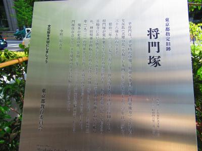 大手町の高層ビルに囲まれた中にあります。将門とはもちろん平将門のことで、下総(今の千葉県)で亡くなったとされていますが、それがなぜ都会のど真ん中、大手町に祀られているかと言うと、平安京でさらされた平将門の首が、怨念により3日後に白い光を放って東国に向かって飛んでいき、その途中の土地土地に落ちた、という伝説があり、ここもその首が落ちた場所の一つだからです。