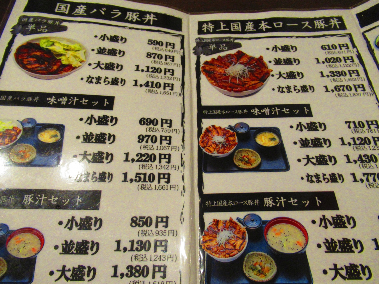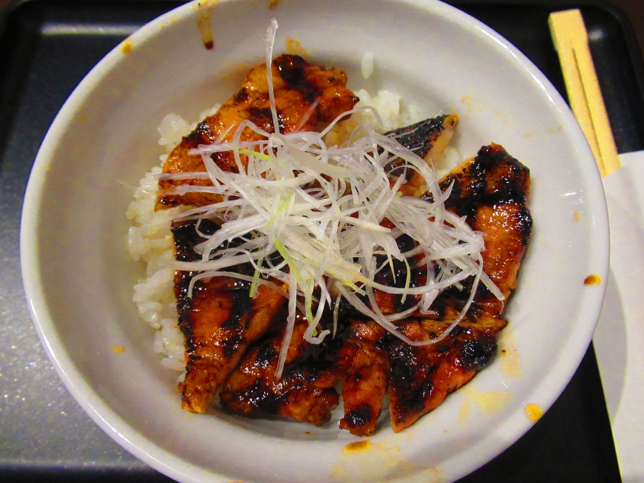 「特上国産本ロース豚丼」を注文しましたが、まず盛り方が汚い。そして肉が硬くてかみ切れない、焦げてて苦い、とイマイチでした。小盛りにしておいてよかったです。