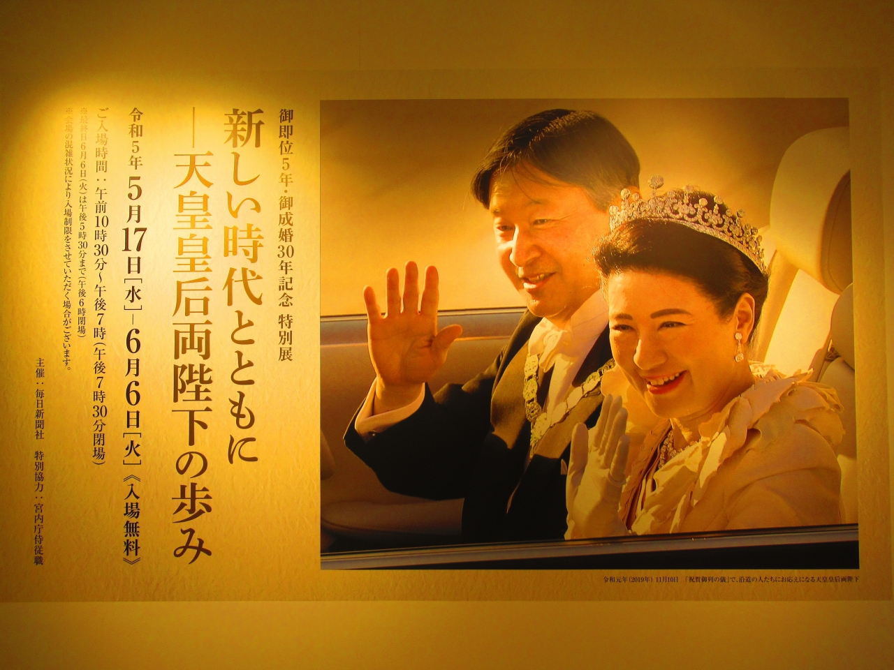 今回、8階催事場で開催していた「天皇皇后両陛下の歩み」展に行ってきました。最終日ということもあって、混んでいました。無料の割には内容が充実していました。天皇陛下が即位して令和になって5年目で、天皇、皇后両陛下の結婚から30年も経ったという時の流れの早さを感じました。- 旅行時期