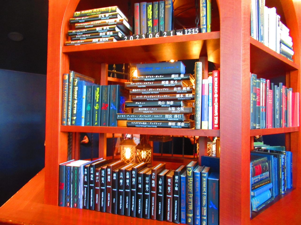 東京メトロ赤坂駅からの階段には登場人物の肖像画が書かれていて、タイムターナー(逆転時計)が展示されていて、すでに「ハリー・ポッター」の世界が始まっています。タイムターナーでは写真を撮る人が並んでいたので、写真を撮りたい場合は時間に余裕を持って行った方がいいです。