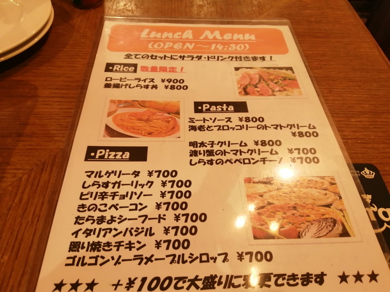 関内駅から近いのですが、地下ということもあり、わかりにくい場所です。ランチはサラダ、ドリンクつきで¥700からなので、とてもお手頃です。ピザを頼んでもそれほど待たされず提供されました。店内は少し狭めです。スタッフは客が帰るたびにドアまで送っていて丁寧だなと思いました。