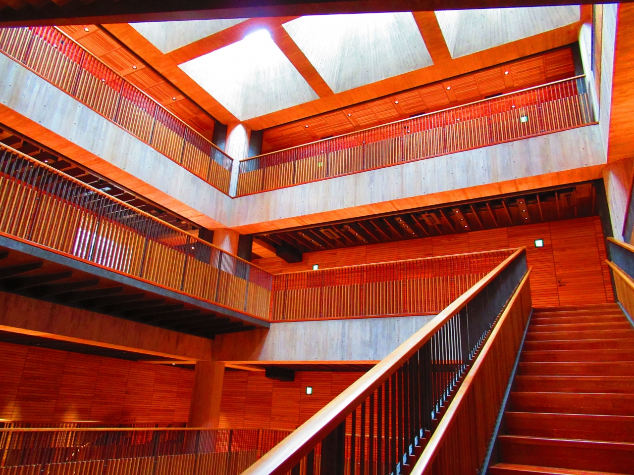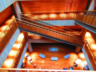 2~5階はいったん外に出ることになりますが、吹き抜けの木材を多用した空間を見学できます。- 旅行時期