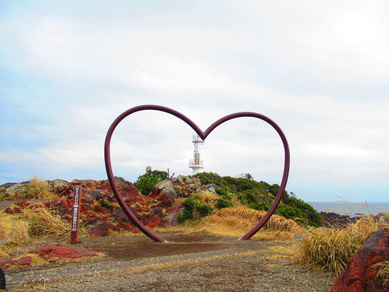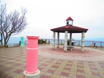 「観音崎展望所」には幸せのポストという、ピンクと緑のポストがあり、海の眺めもよいです。屋外にあった「お肉の自販機」は初めて見ました。- 旅行時期