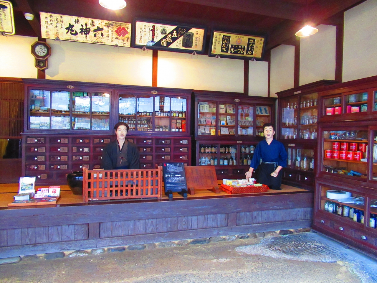 明治時代の薬商だった「佐野薬局」を博物館として公開しています。当時の様子を道具や人形で再現していて、その人形がとてもリアルです。近付くと音声も流れます。2階にも上がれます。広い屋敷に多くの家族や使用人が同居していたんだろうなと想像できます。