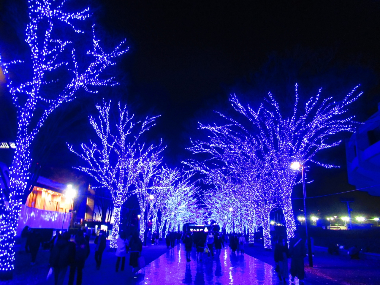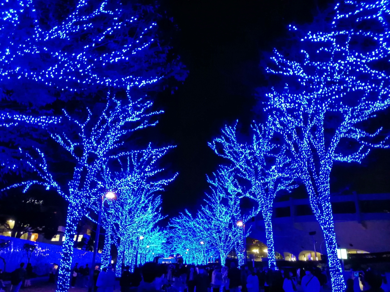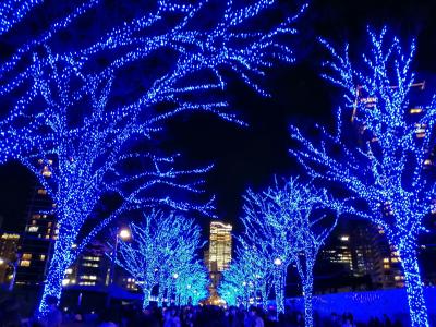 17時に点灯されますが、19時前に行ったところ、そこまで混んではいなかったです。公園の一部なので車が入って来ず、歩きやすいです。下にミラーシートが敷いてあり、反射してキラキラ光っていました。写真映えすると思います。途中に設置されているディスプレイではプロジェクションマッピングが投影されていました。- 旅行時期