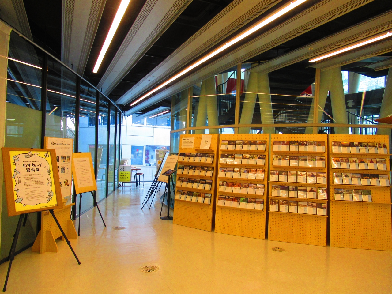 伊東豊雄設計のおしゃれな建物です。1階にはカフェがあり、2~4階は広くて見やすい図書館で、こんな図書館が使えるなんて仙台市民がうらやましいと思いました。2階には東日本大震災の常設展示「3がつ11にちをわすれないためにセンター」(わすれン!)があって、実際に震災を経験した人たちによる記録など多くの資料があります。