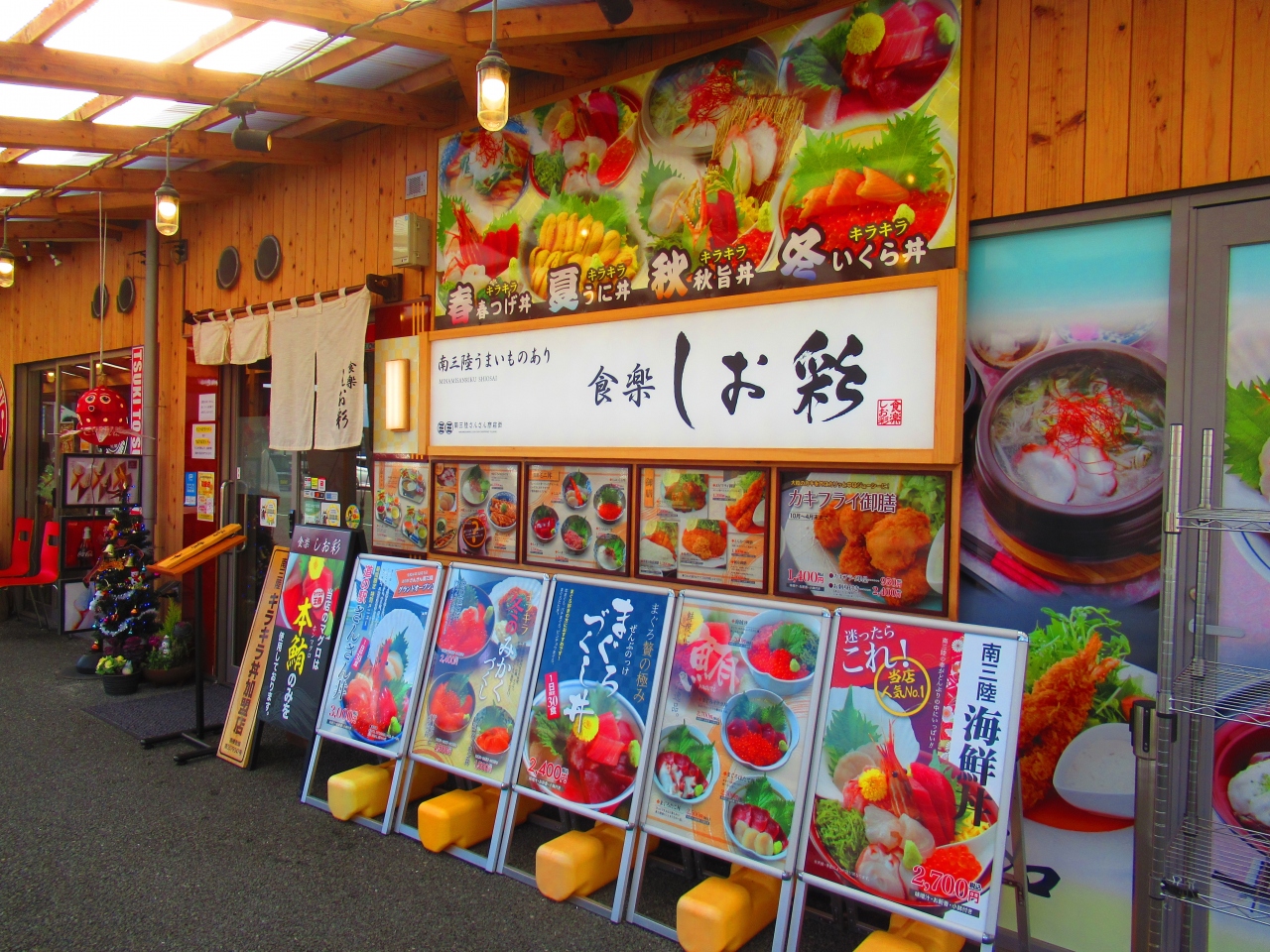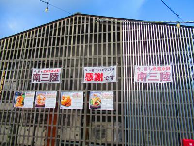 「道の駅さんさん南三陸」にある商店街です。地元の物産を販売するお店や飲食店などがあります。飲食店はランチの時間が終わると14時ぐらいで一度閉まってしまいます。