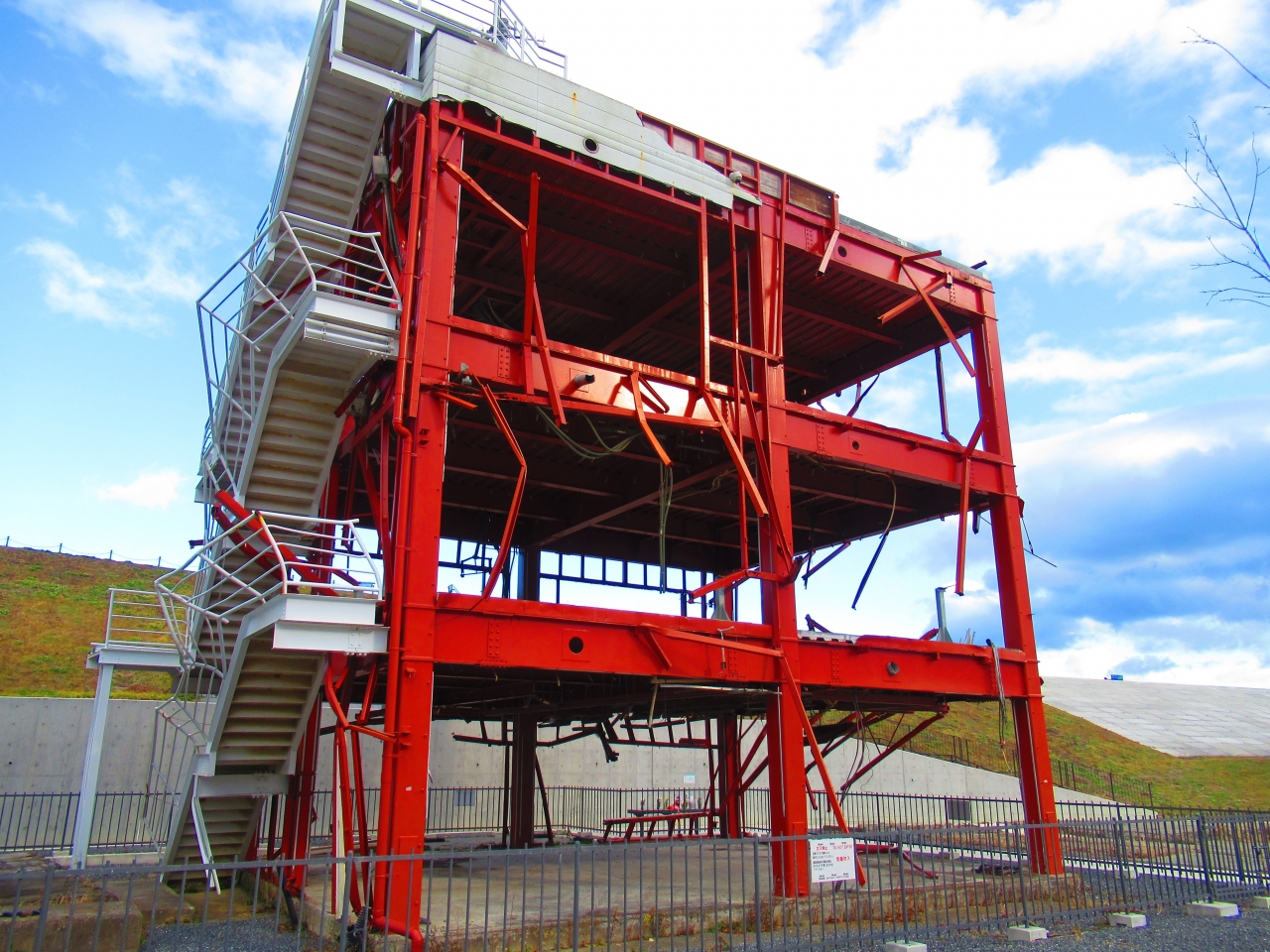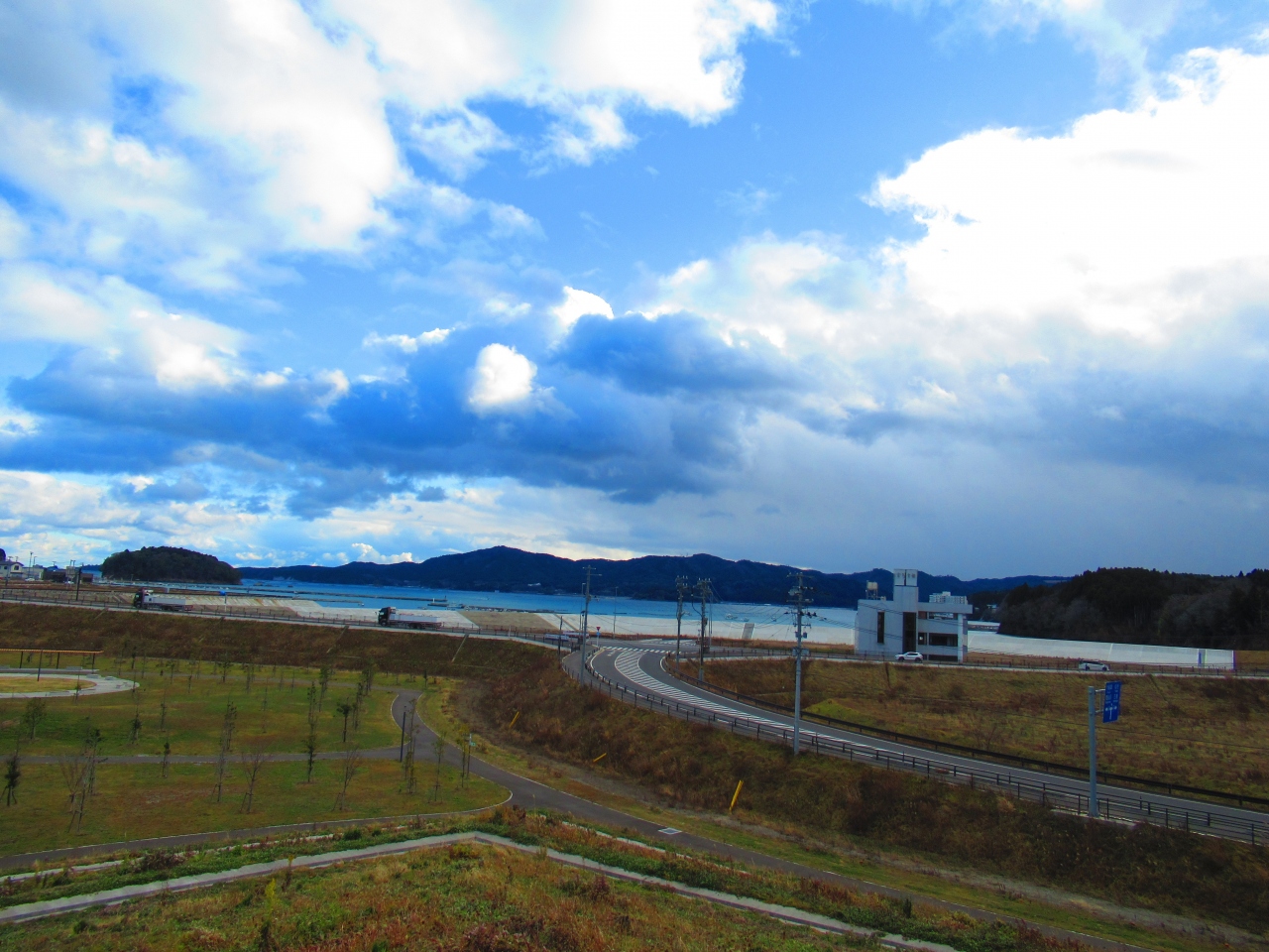 東日本大震災の津波で破壊された「南三陸旧防災対策庁舎」を中心とした公園です。震災時は、このあたりにはびっしり家が建っていましたが、津波で流され、今はすっかり変わってしまって、当時のことを思い出させるものは何もなくなっている中で、やはりこの防災庁舎があることで津波の脅威や、必死に生きようとした人たちの思いを感じることができます。