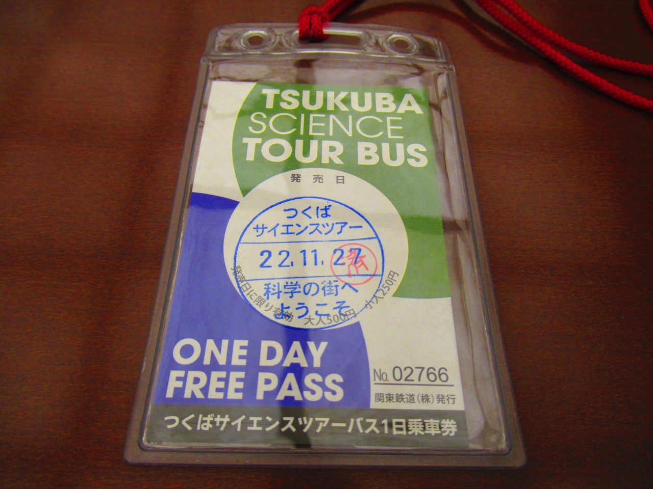 つくばセンター発着で土日祝のみ運行している、つくばにある5つの研究所、展示施設をめぐるバスです。1日乗車券が¥500です。