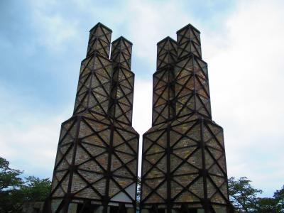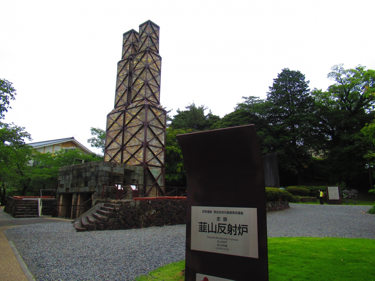 そこを抜けて屋外に出ると反射炉を見ることができます。思っていたより小さいなという印象です。いろいろ説明板があり、ガイドの人が熱心に説明していました。