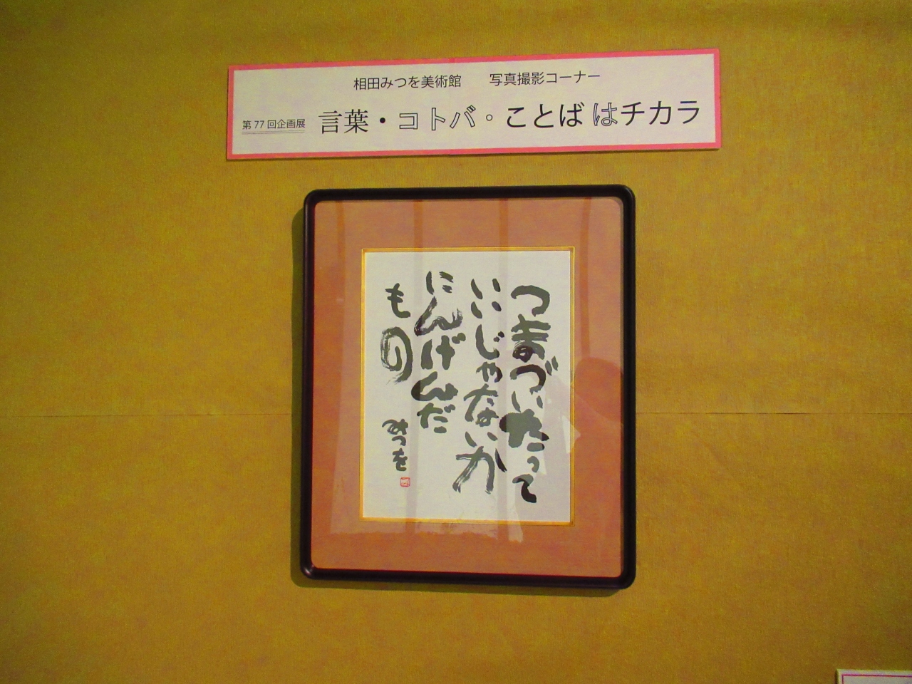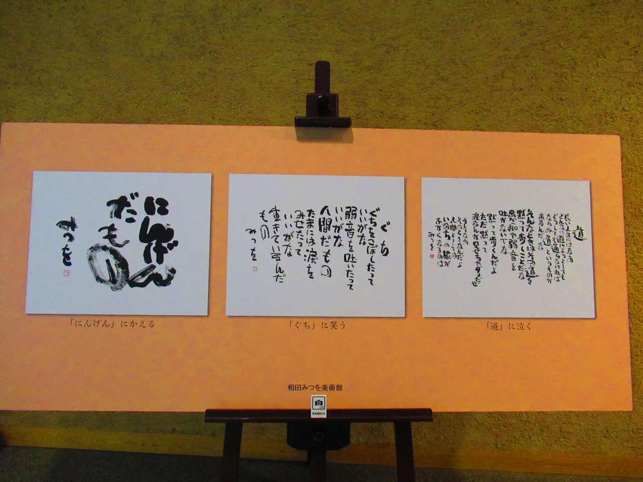 「にんげんだもの」で有名な相田みつをの心に響く詩が、あの独特の書体で書かれたものがたくさん展示されています。