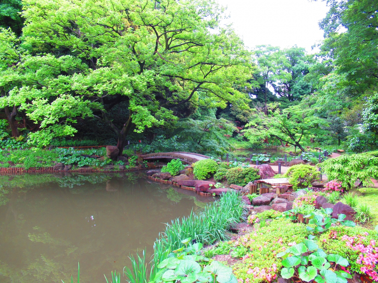 庭園美術館に入館すると庭園にも入れます。庭園のみの入場だと¥200です。旧朝香宮邸はかなり広い敷地なので、庭園だけでも広いです。日本庭園には茶室もあり、時々イベントをやっています。池の水があまりにも青くて驚きました。ところどころにベンチがあるので、持ち込みで食事もできます。