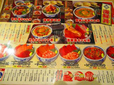 ランチメニューは海鮮丼が充実していました。まぐろ丼を食べましたが、まぐろが嚙み切れなかったです。お冷とおしぼりがテーブルにセットされていて効率的でした。- 旅行時期