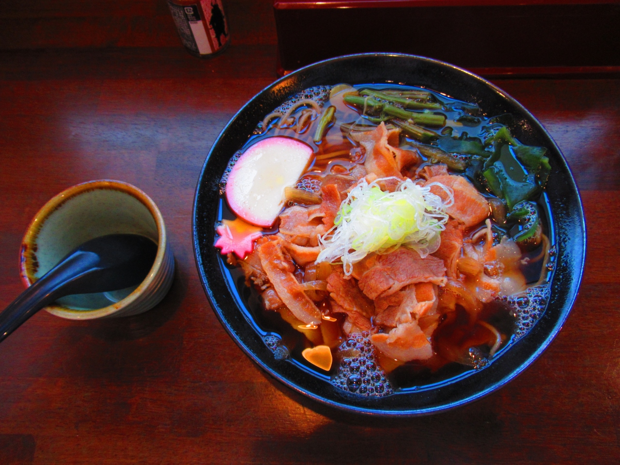暖かいそばがよかったので「肉そば」を注文し、運ばれて来た時にはそう思わなかったのだけど、すごく量が多くて、食べても食べてもなくならなくて、結構残してしまったので、小盛りにすればよかったと思いました。