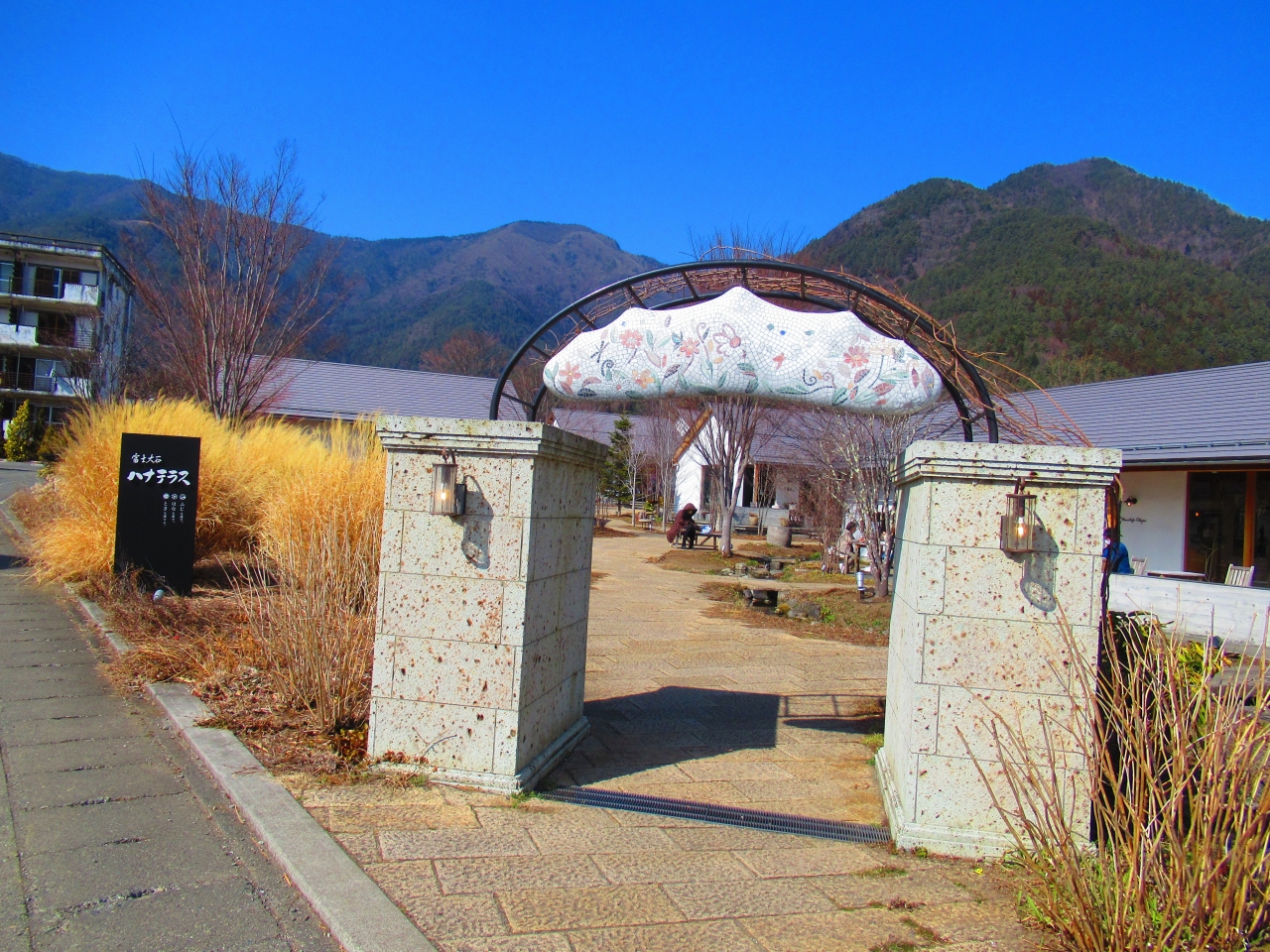 「富士大石ハナテラス」にあるレストランです。窓から富士山が眺められますが、窓際席はテーブルが小さいので、食事だとちょっと厳しいです。テラス席もあります。山梨らしく、桃ジュースやぶどうジュースもありました。