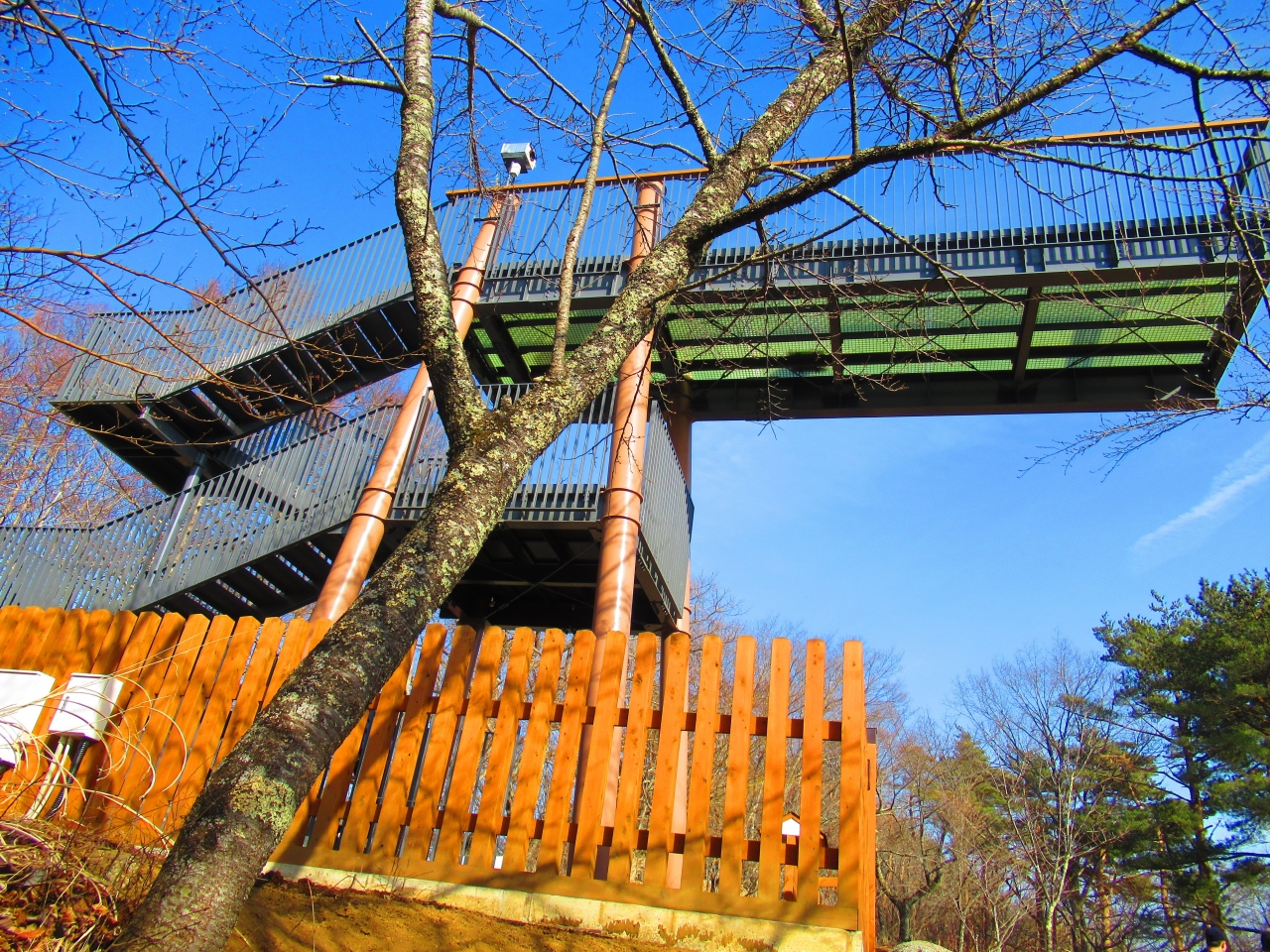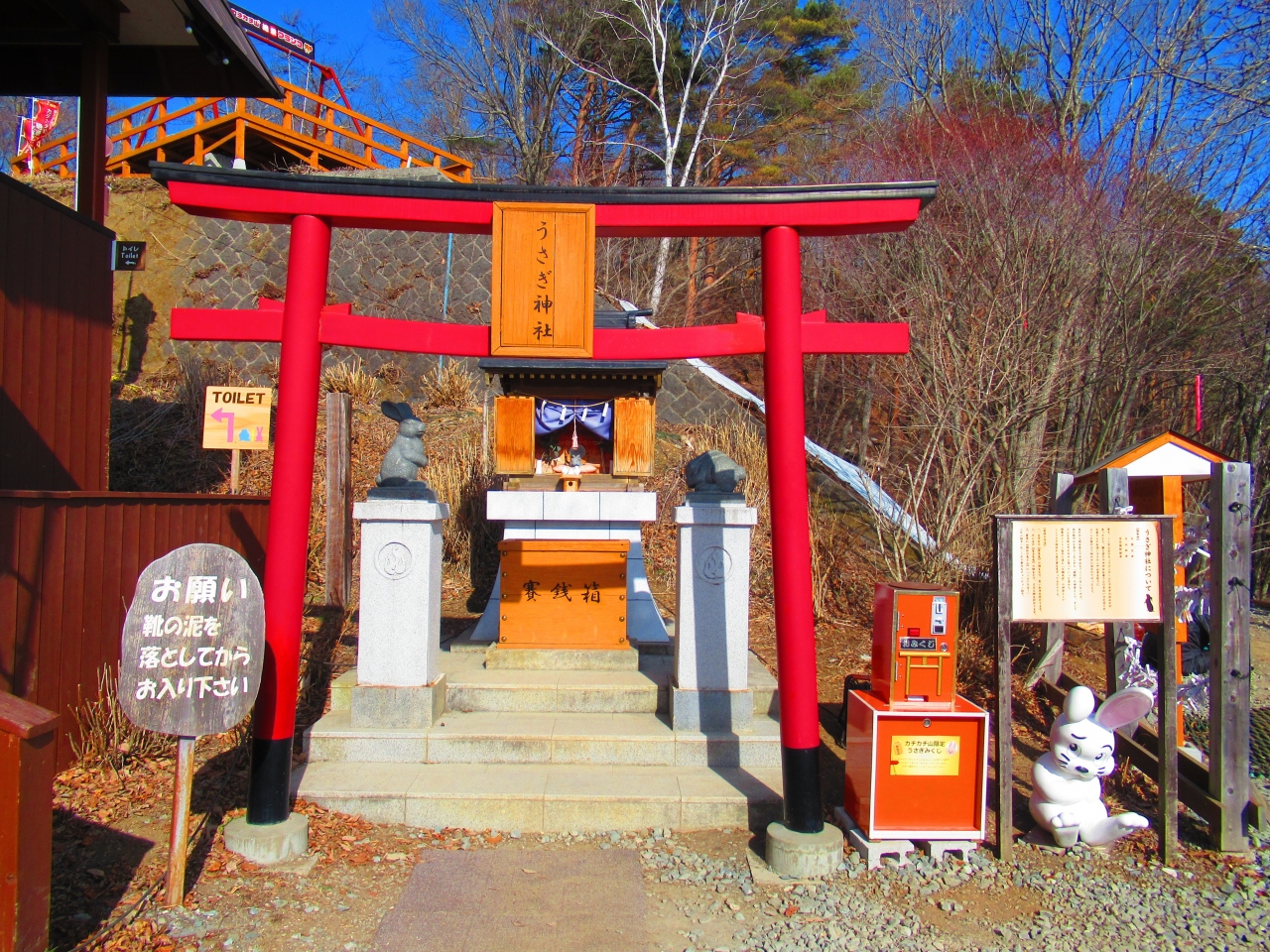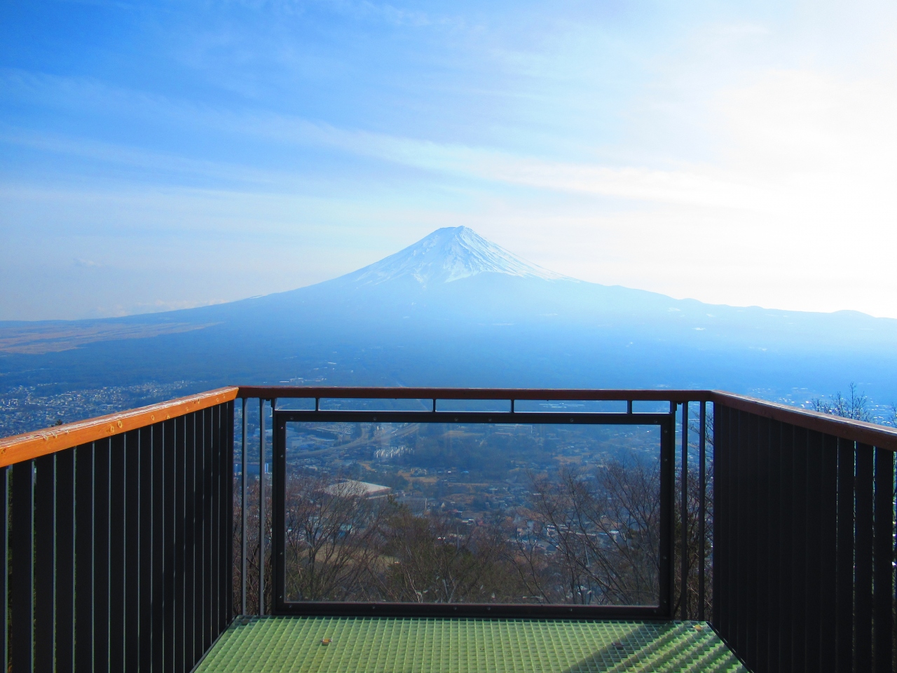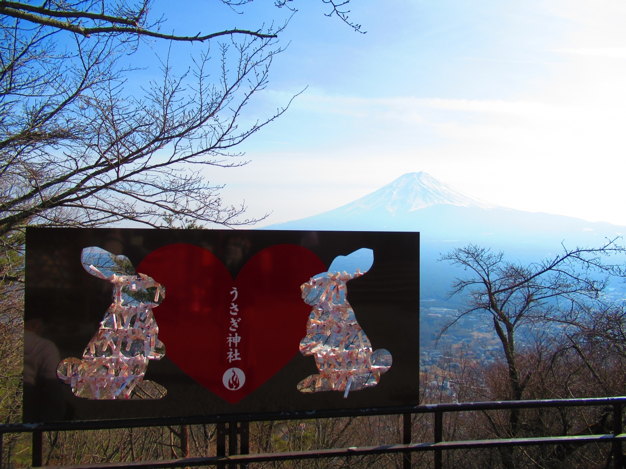 「河口浅間(あさま)神社」から車で10分ぐらいの、ご神体の富士山を仰ぎ見て拝むための「遥拝所」です。歩いて登ることもできるようです。まだ整備したばかりで工事中の感じですが、鳥居越しの富士山は絶景です。山麓斜面に桜を植えているので、いつか桜が咲くようになったらさらに素晴らしい景色になると思います。