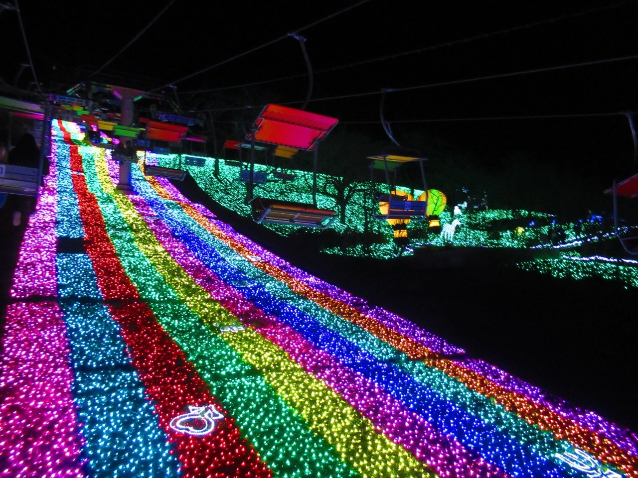 さがみ湖リゾートプレジャーフォレストで毎年実施しているイルミネーションです。電車とバスでも行けますが、バス停は敷地の外なので中に入ってからちょっと歩きます。車なら駐車場で近くまで行けますが、駐車場代が\1,000かかります。