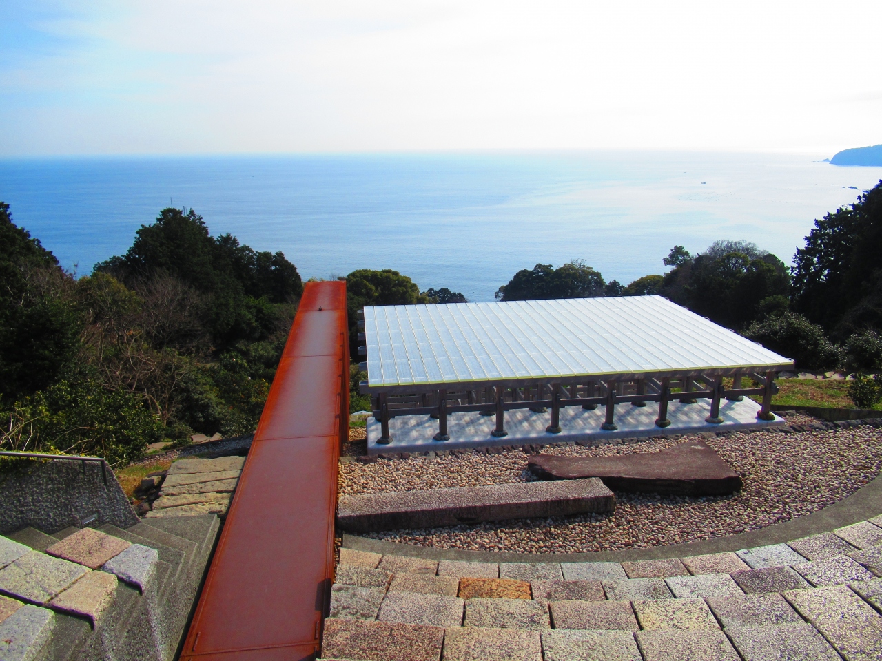 根府川駅から送迎バスで行きました。ちなみに地図で見ると駅からすぐで歩けそうですが、かなり高低差があり、道路も大回りなので歩くのはかなり大変だと思います。送迎バスは1時間に2本ぐらいですが、早く着いてしまったら、根府川駅周辺に時間を潰すところは無さそうでした。