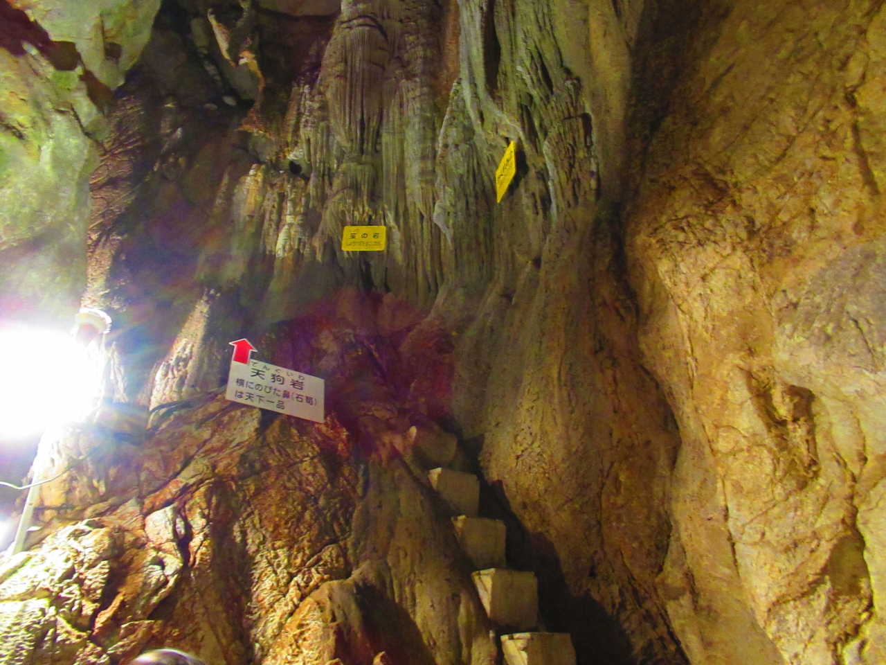 帝釈峡にある鍾乳洞です。入場料は¥300。入り口は狭くて、細い鍾乳洞の壁をたどっていくと、鍾乳石、石筍、石柱等々がライトアップされています。 奥行き200mまで見学できるようになっていますが、実際の奥行きは不明とのこと。