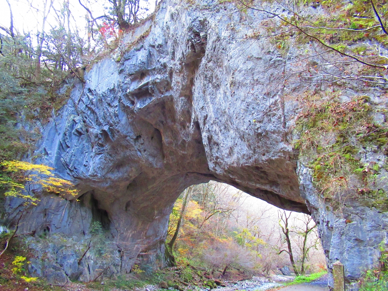 水の浸食作用によってできた長さ90m、幅19m、高さ40mの日本一の天然橋で、自然が創りだした橋ですが、 「神の橋」とも言われています。世界三大天然橋 のひとつともいわれ、国の天然記念物に指定されています。近くでみるとかなり大きいです。